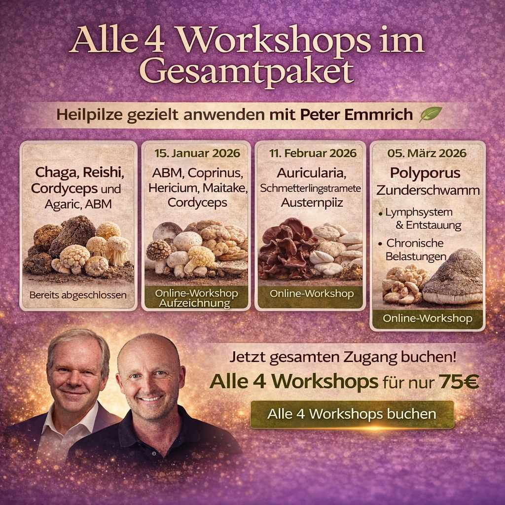 Komplettzugang zu allen vier Heilpilz-Online-Workshops mit Dipl.-Biologe Peter Emmrich M.A.